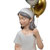 Statuette d'une jeune femme assise avec maillot et bandeau blanc tenant des ballons argenté et doré