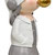 Statuette d'une petite fille avec une bulle de chewing-gum dorée et des écouteurs sur les oreilles