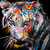 Impression sur toile d'une photo de tigre noir et blanc et de "tag" colorés