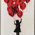impression sur toile de la silouette d'une fillette en noire tenant des ballons rouges.